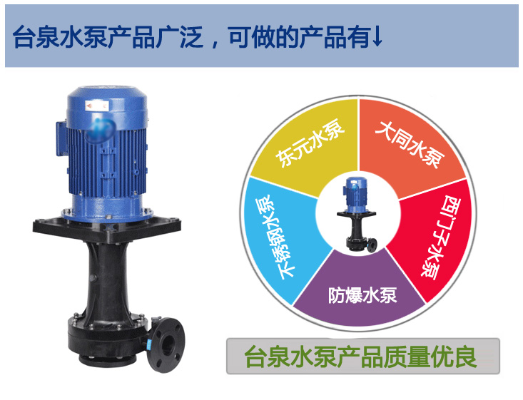 臺泉耐酸堿直立式泵,泵體PP材質精密鑄造成型。電機與泵體是一體形同軸設計,不僅僅保證了電機的穩固性,而且水泵具備了空轉性能。水泵廣泛使用于電渡、涂裝、化工、PCB線路板、環保設備等方面。