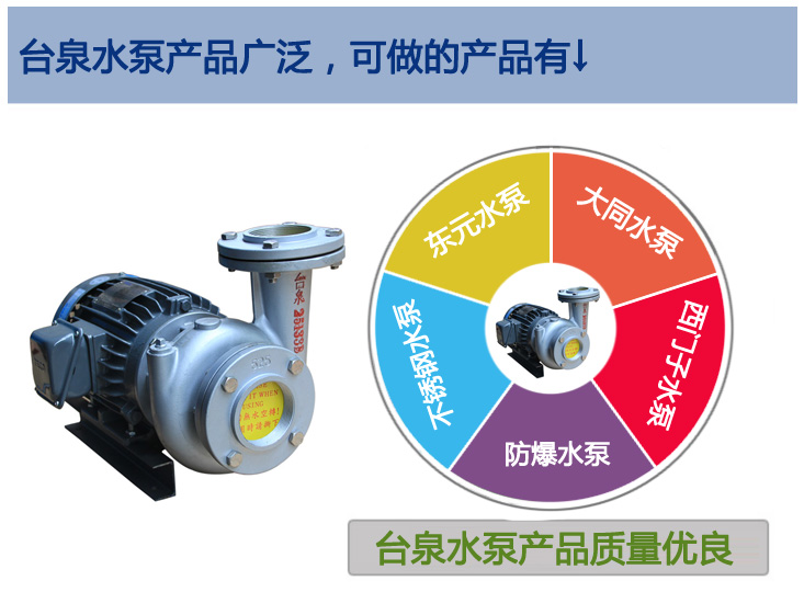 東莞市川洋機電有限公司是專業制造(臺泉牌泵浦)的制泵廠商-為您提供:不銹鋼泵,離心泵,排污泵管道泵循環泵, 渦流泵, 源頭廠家直銷供應,40年品牌及臺灣技術生產制造!